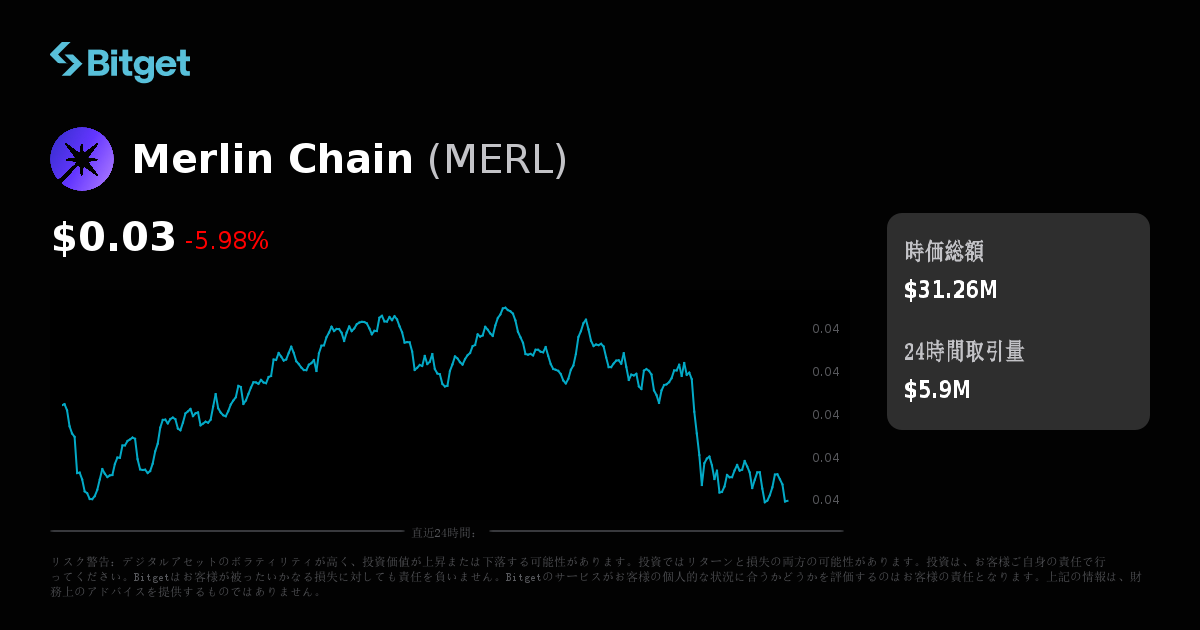 Merlin Chain価格(USD)、MERL価格のリアルタイムチャート、時価総額、ニュース