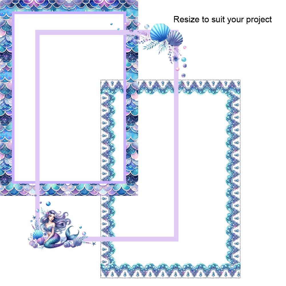 Mermaid Border Digital Papers Graphic by Hurairagraphics · Creative Fabrica