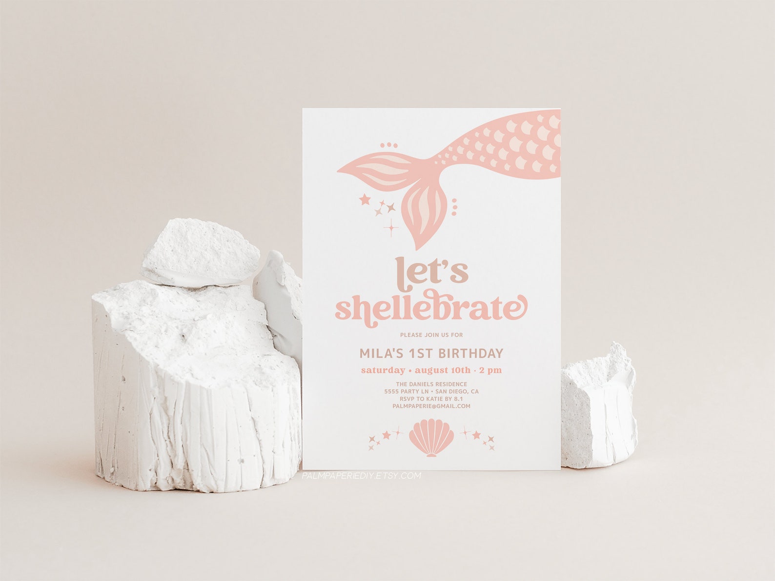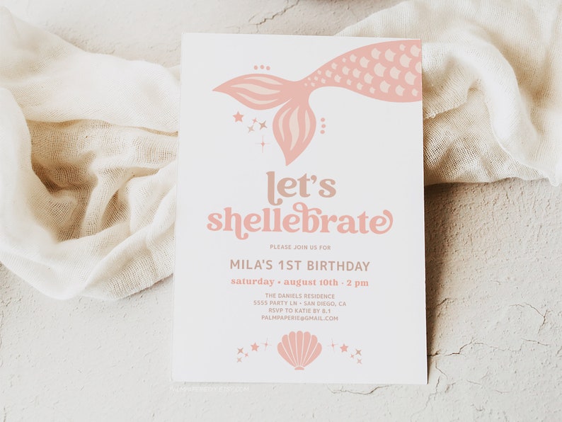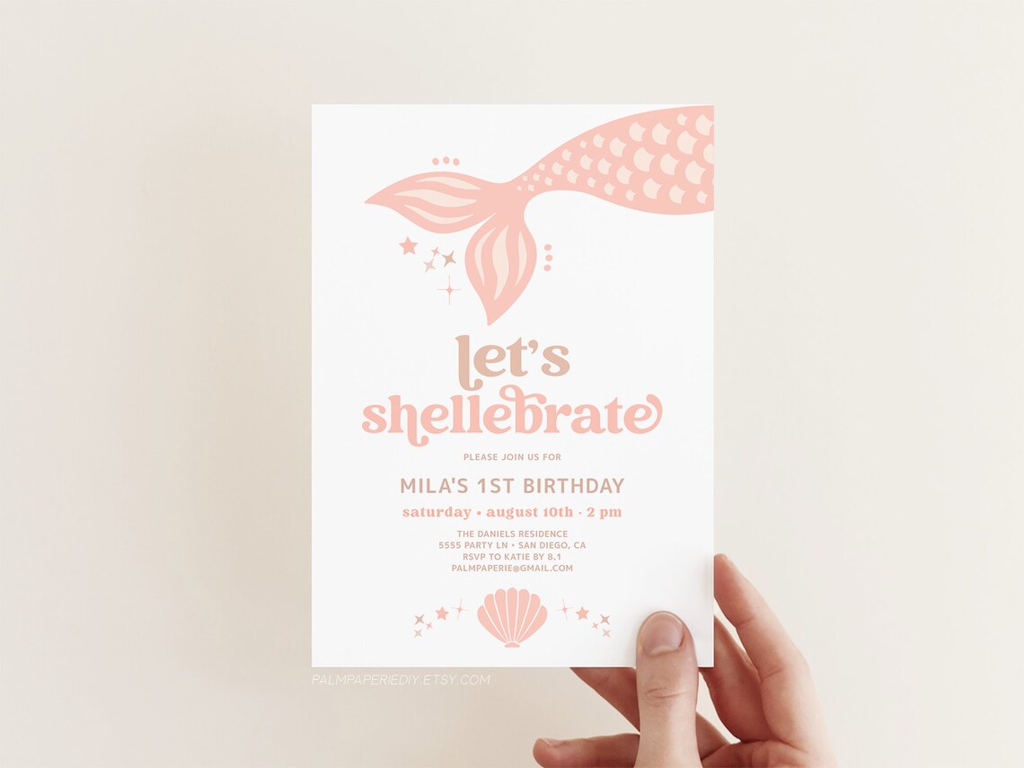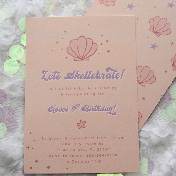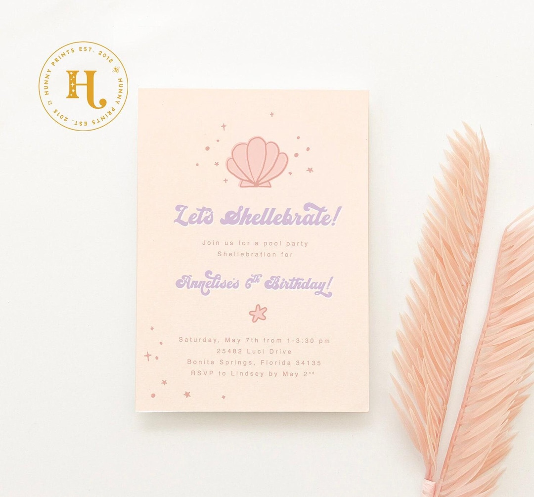 Mermaid Birthday Party Invitation, Shellebration Birthday, Shell Invite ...