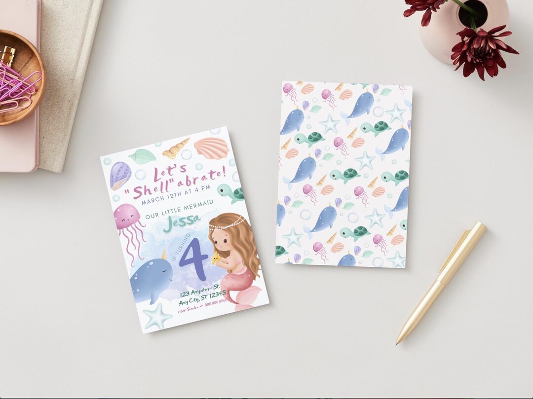 Seashell Mermaid Party Invites - Etsy