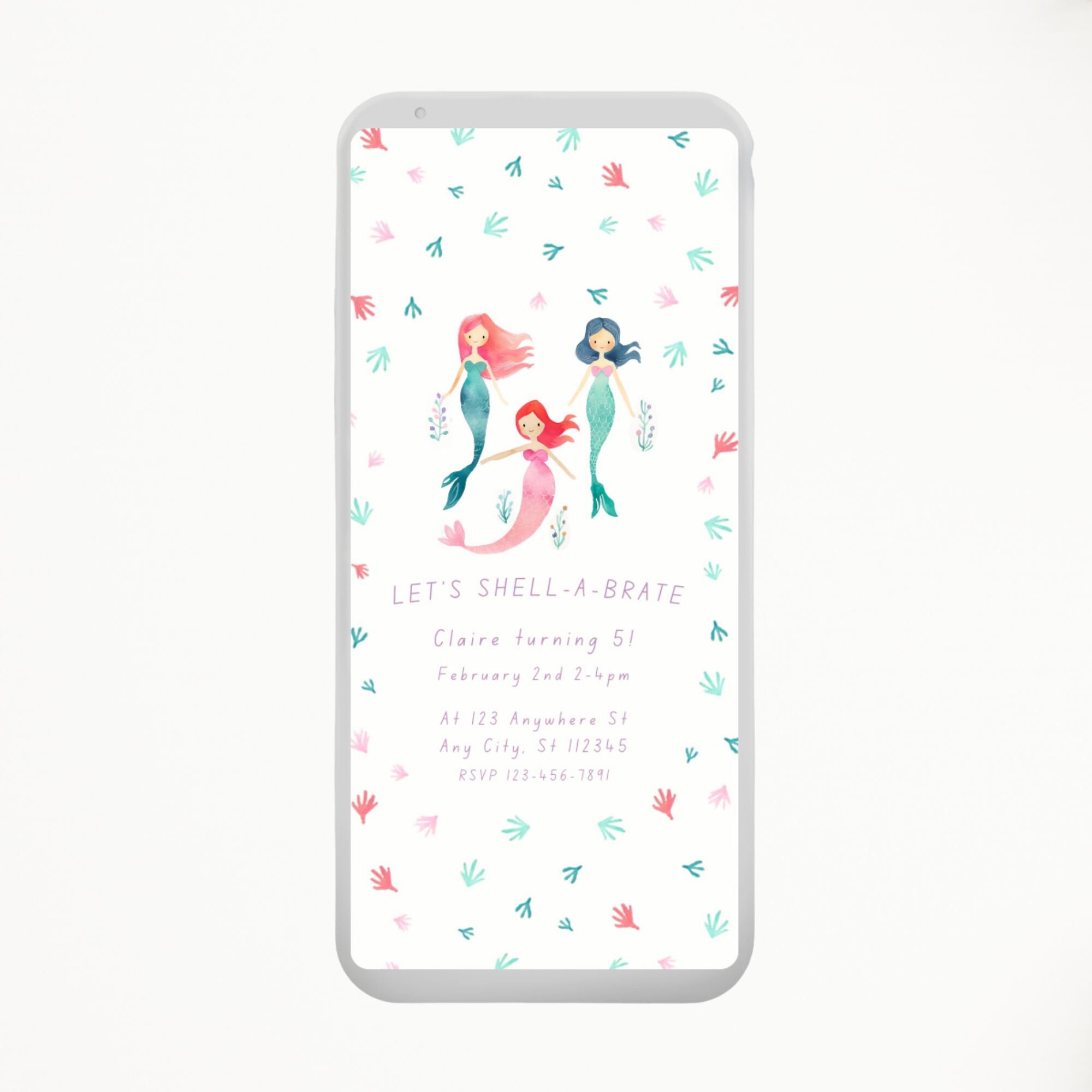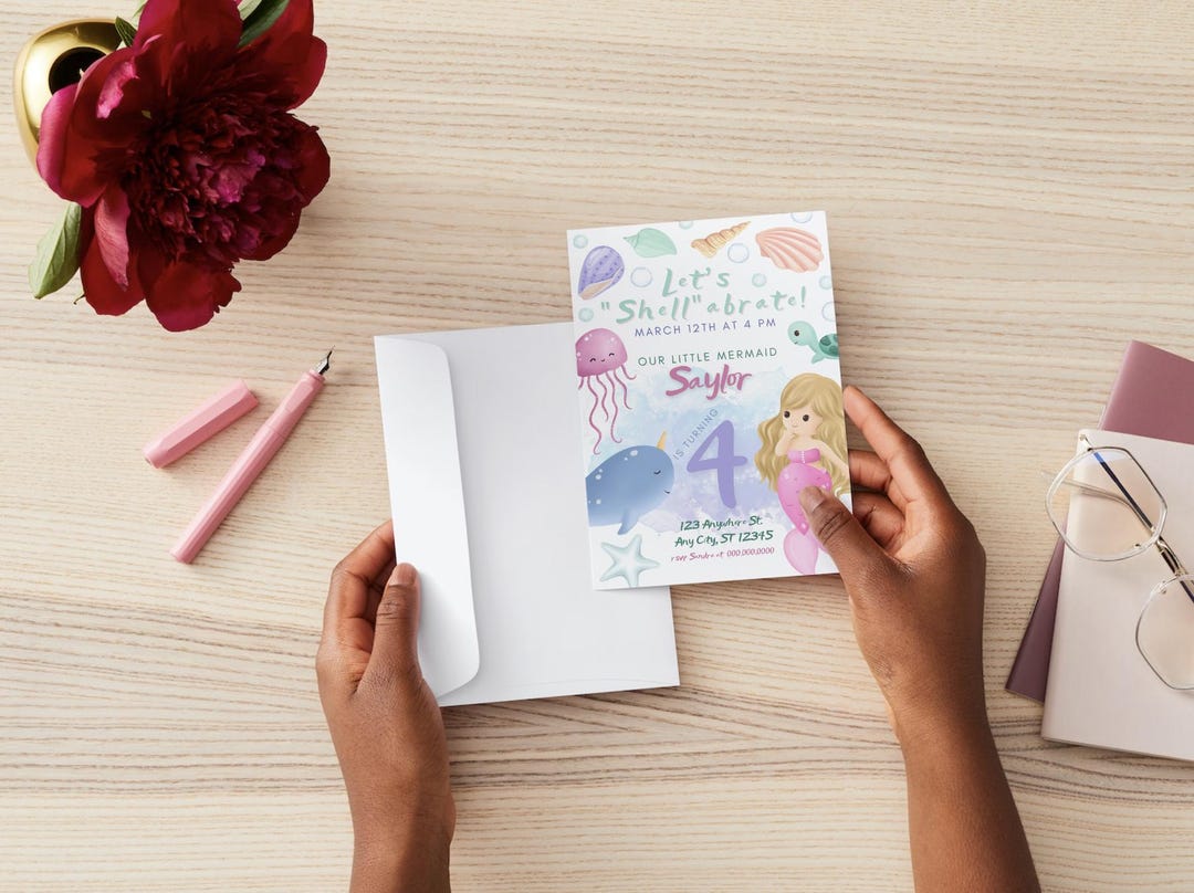 Editable Let's Shell-abrate Mermaid Birthday Invitation, Fun Mermaid ...