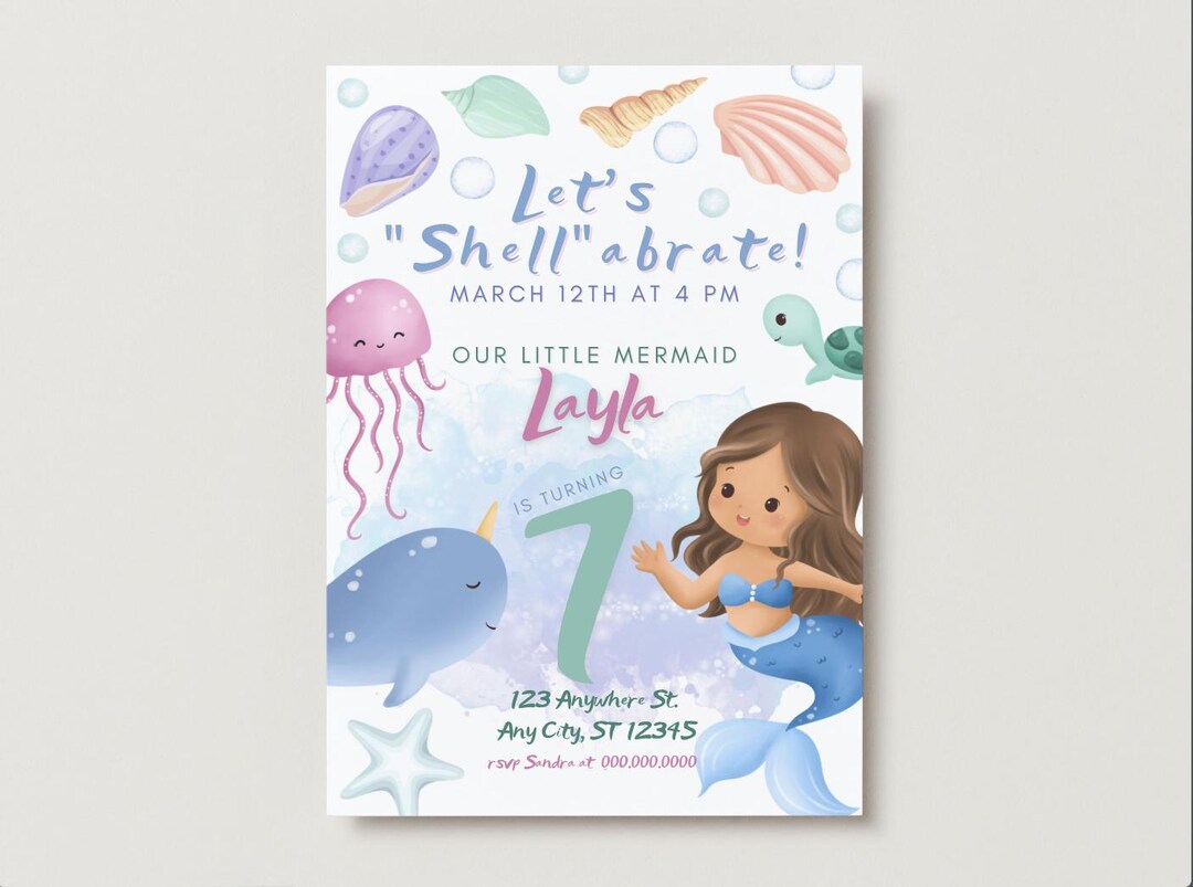 Mermaid Shell-a-brate Birthday Invitation - Etsy
