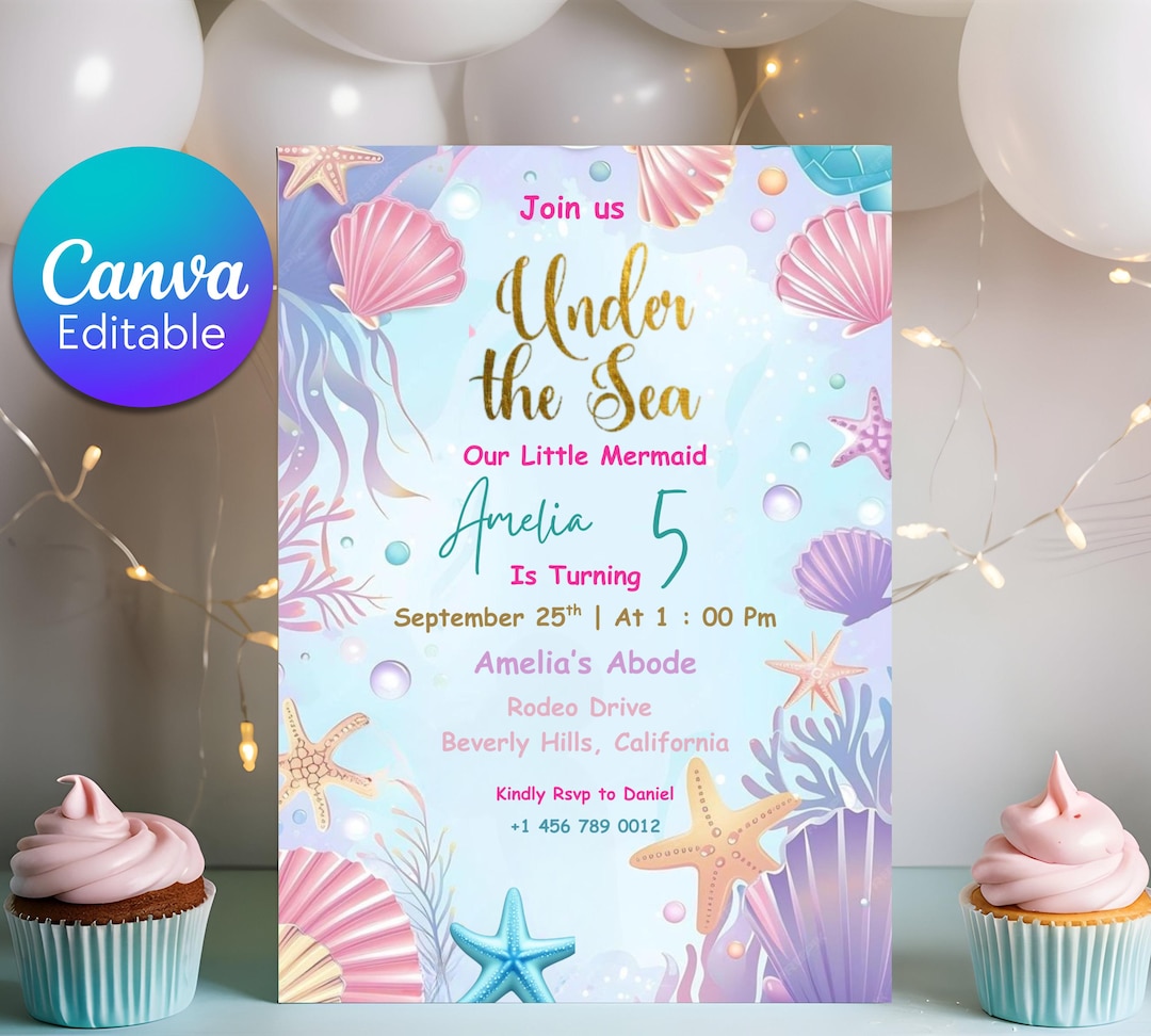 Little Mermaid Invitation Template Seashell - Etsy