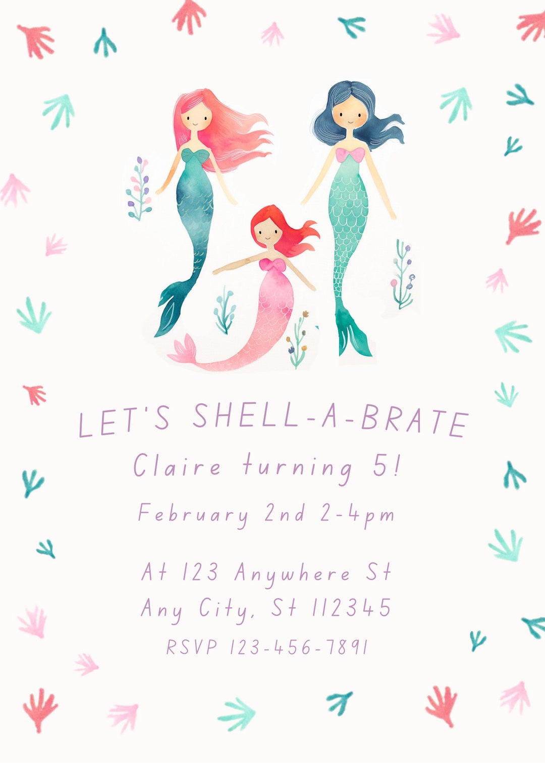 Mermaid Birthday Invitation, Beach Party Invites for Girl, Shellebrate ...