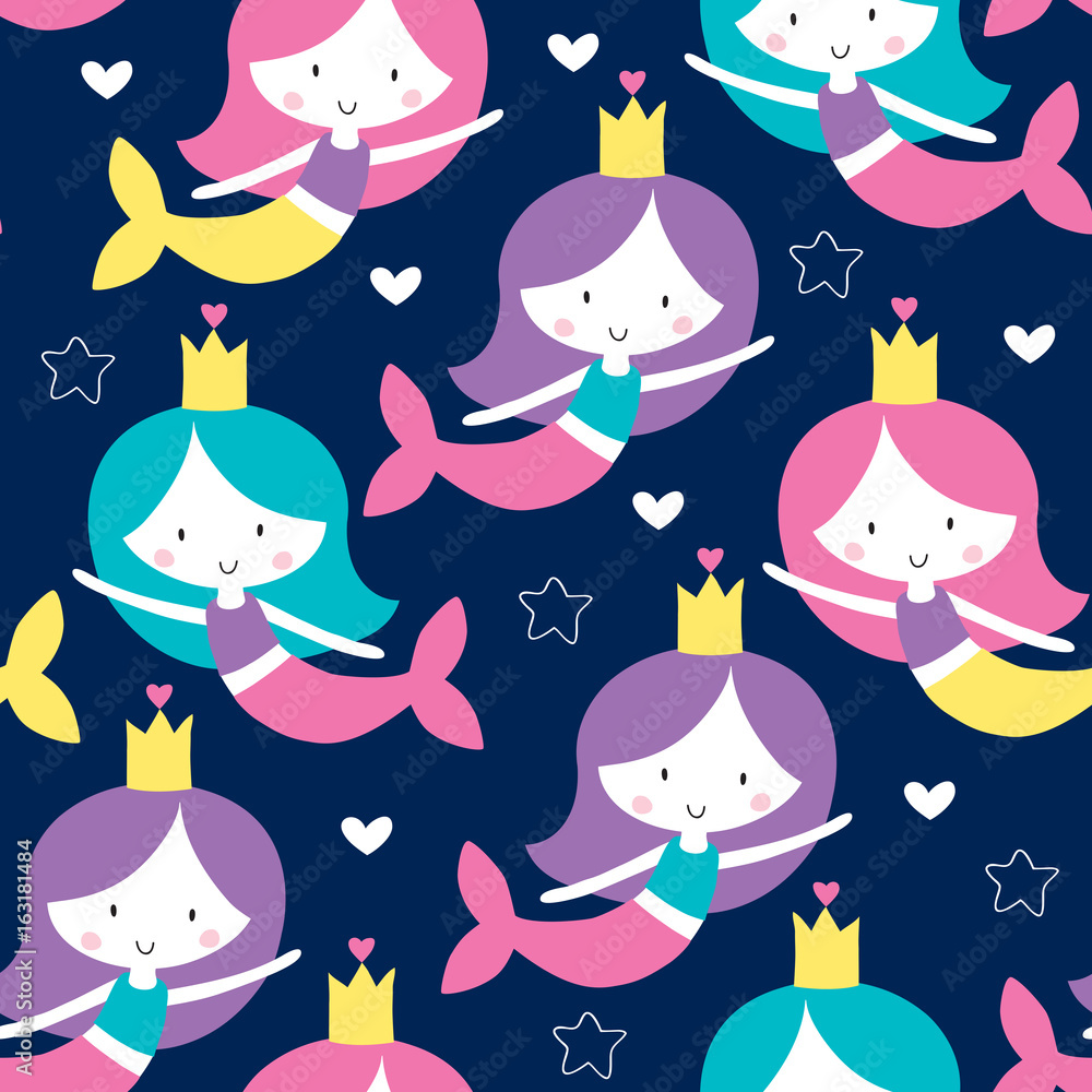 Seamless pattern with cartoon mermaids. Vector Stock Vector Image & Art ...
