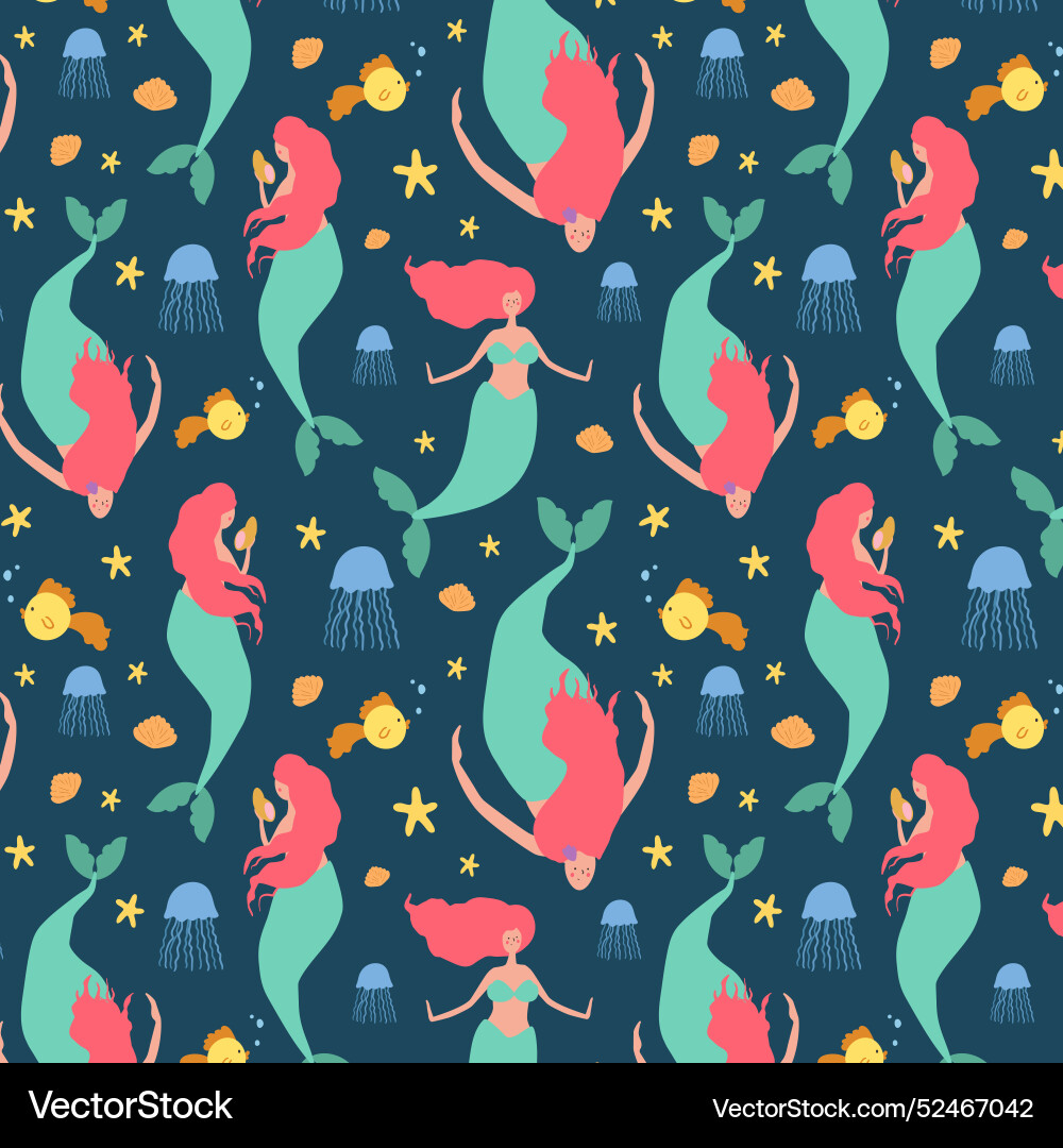 Mermaid seamless pattern cute little mermaids and Vector Image