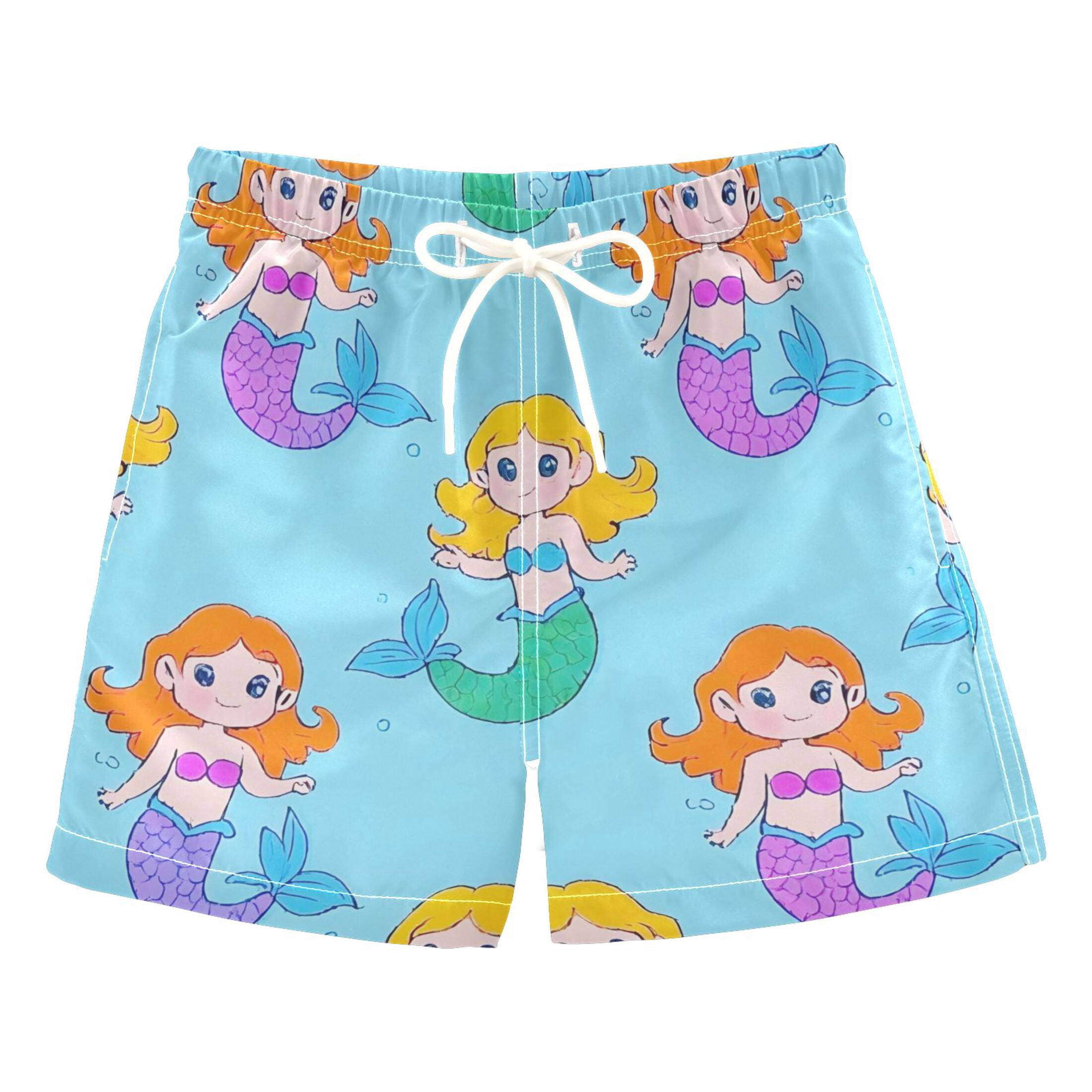 BZSMCE Beach Shorts Trunks Quick Dry Short Mermaid Pattern Of Printed ...