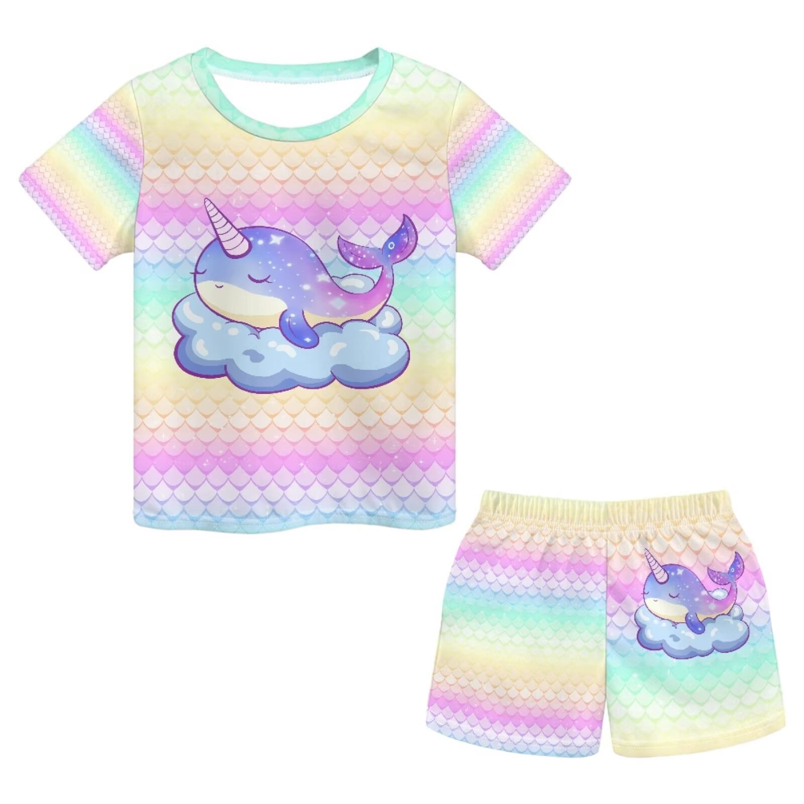 chaqlin Narwhal Mermaid Pattern Girls Summer Outfit Short Sleeve Tee T ...