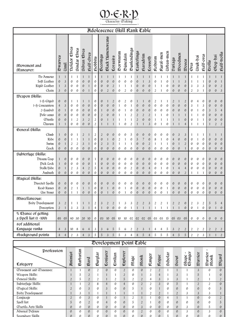 MERP Character Making | PDF | Middle Earth | Middle Earth Races