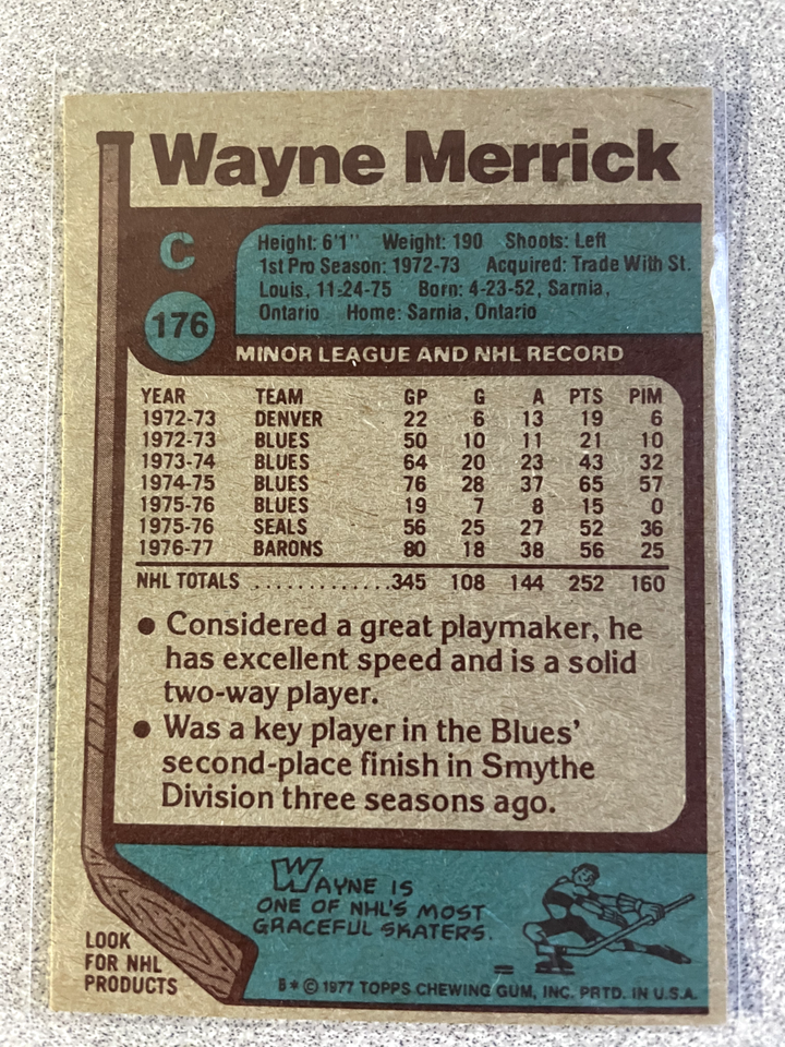 1977-78 Topps Wayne Merrick Card #176 Cleveland Barons | eBay
