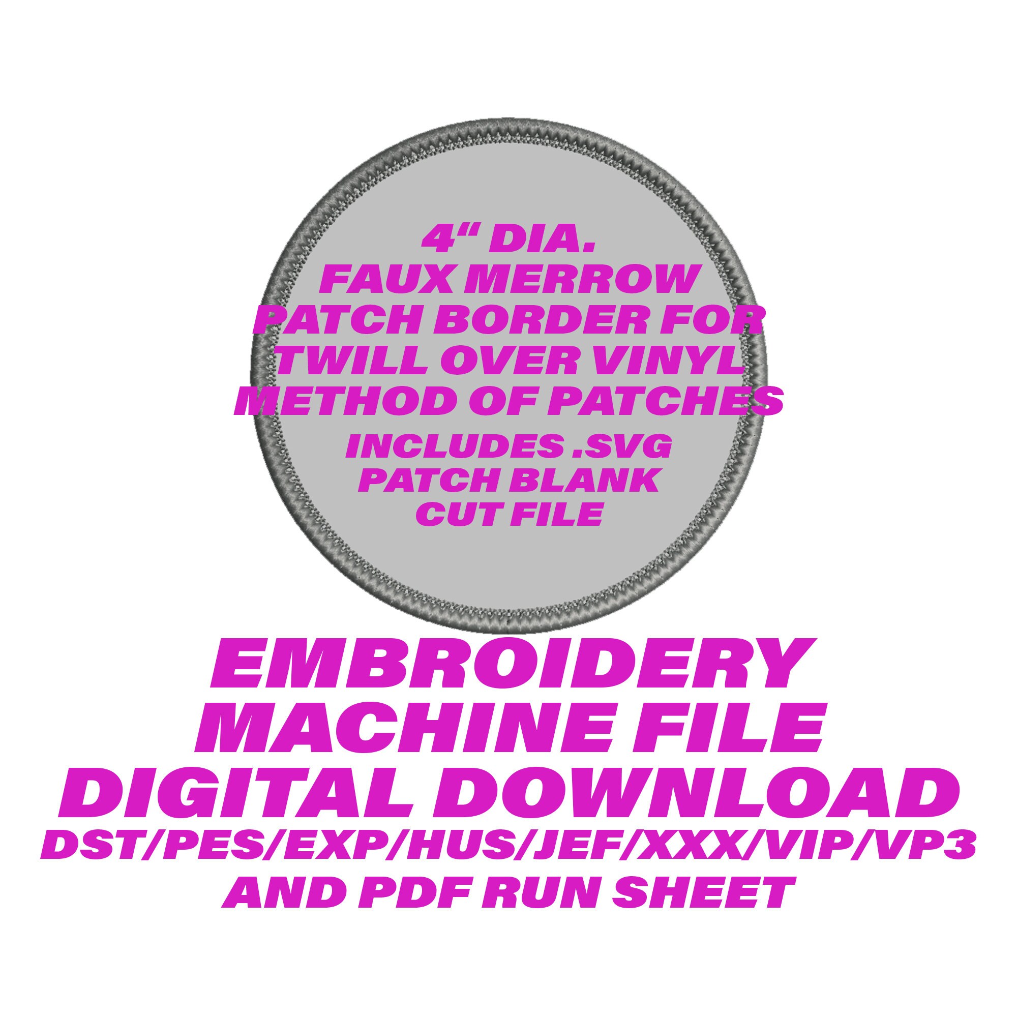 3" Faux Merrow Oval Patch Border: Embroidery Files (DST, EXP, PES) - Etsy