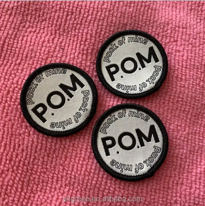 Merrow Round Shape Garment Woven Badge - China Woven Label and Woven ...