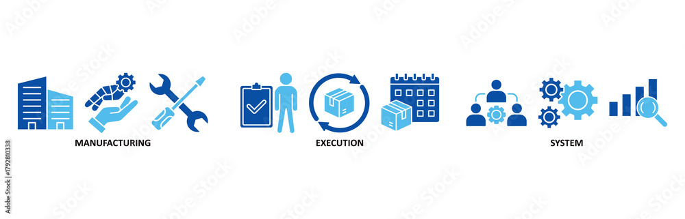 MES concept banner design in icon illustration- Manufacturing Execution ...