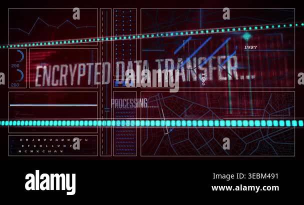 Animation of futuristic graphics processing data and encryption on ...