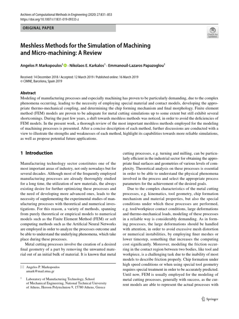 Meshless Methods For The Simulation of Machining and Micro-Machining ...