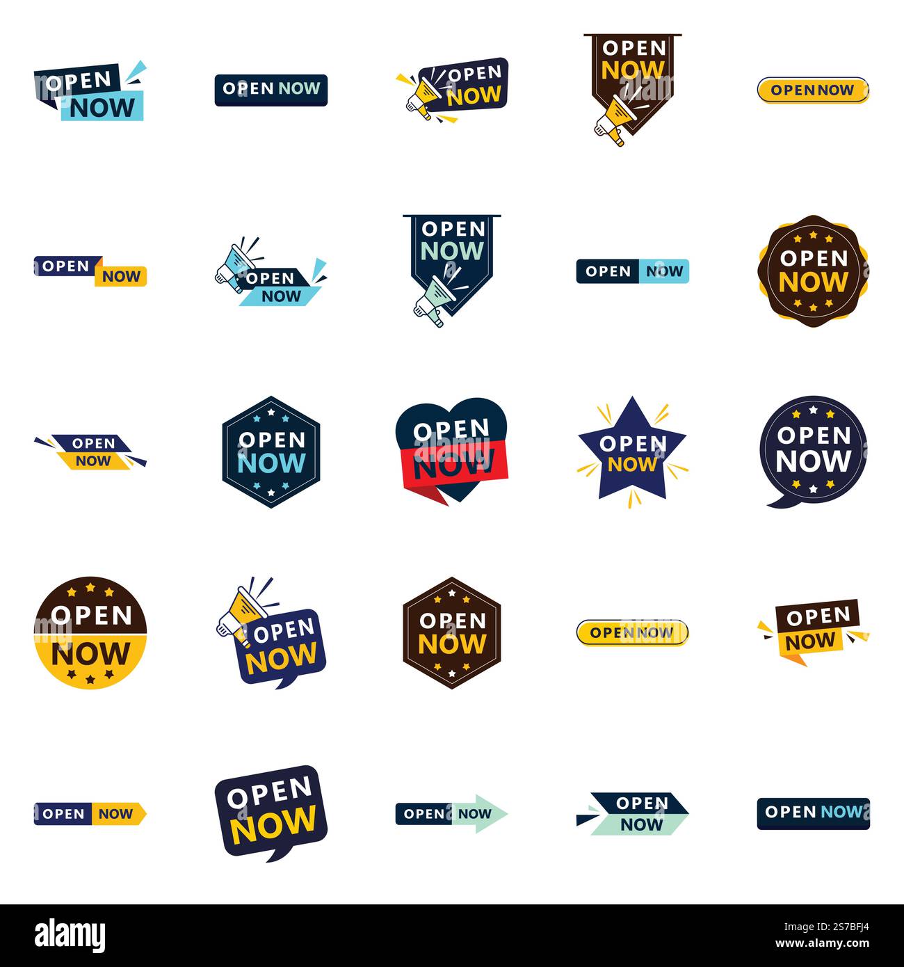 Open now graphics pack 25 designs included Stock Vector Image & Art - Alamy