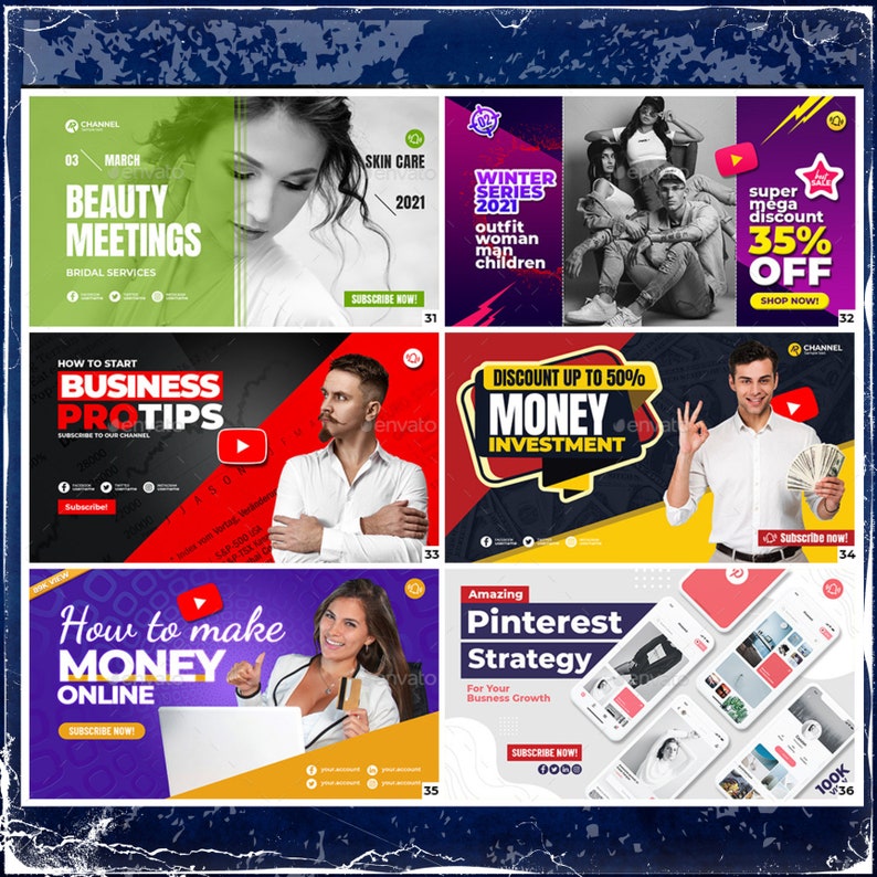 Youtube Thumbnail Bundle 50 Youtube Thumbnail Templates 50 Youtube ...