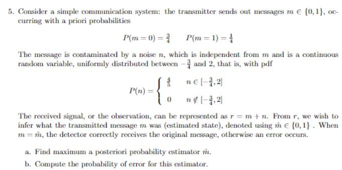 Solved Consider a simple communication system: the | Chegg.com