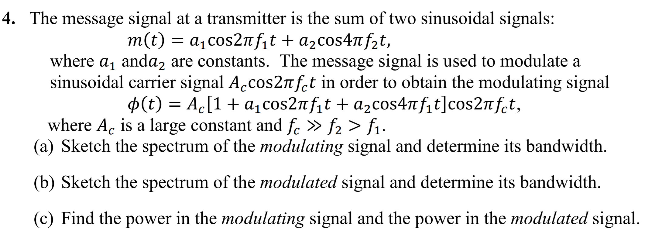 Solved 4. The message signal at a transmitter is the sum of | Chegg.com