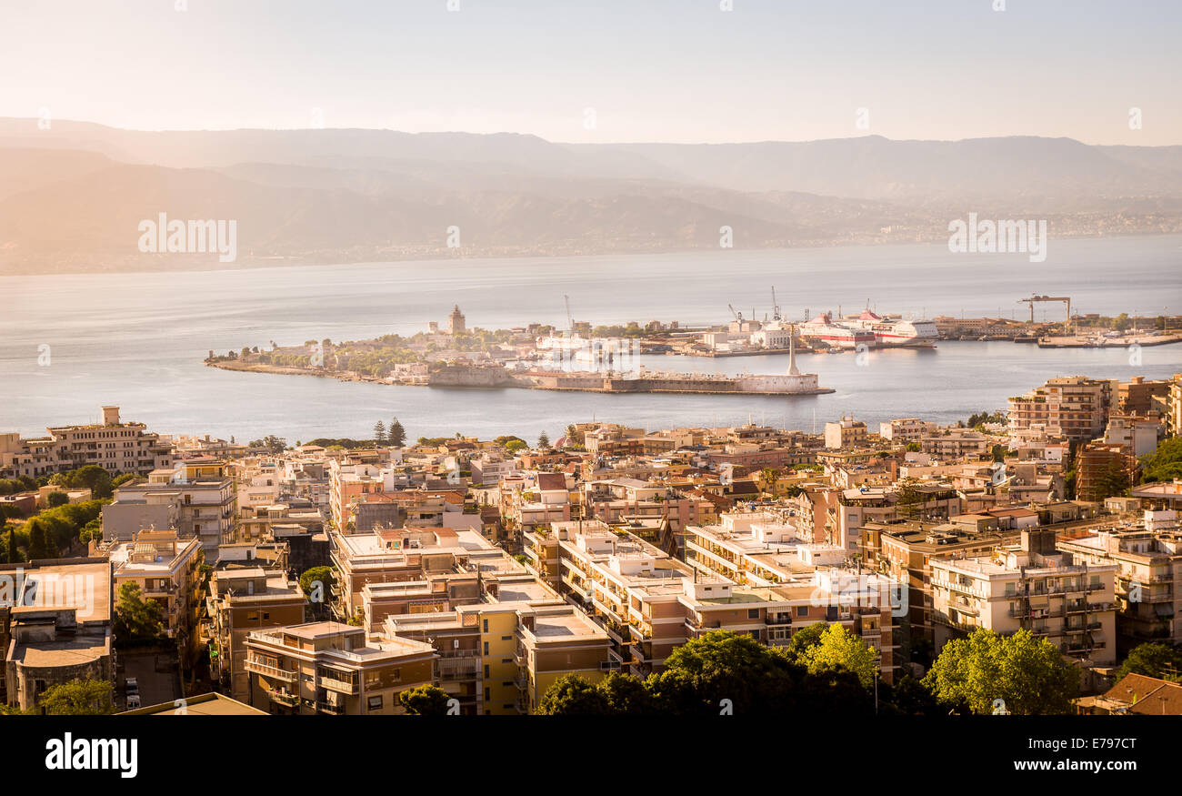 Early morning view over Marina and town of Messina, Sicily, Italy Stock ...