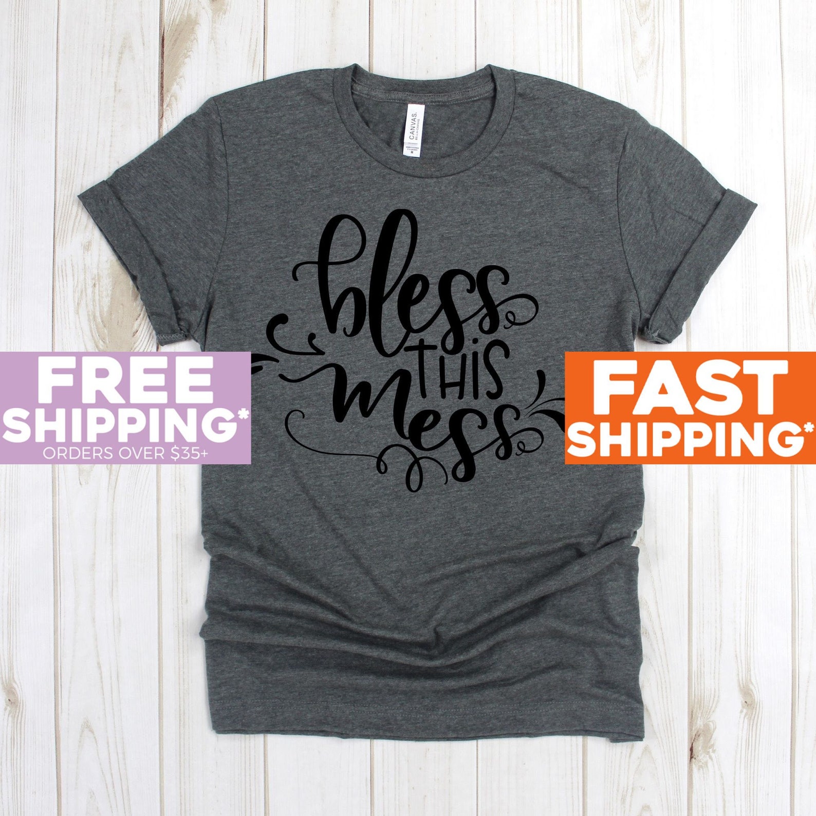 Thanksgiving Tshirt Bless This Mess Cursive Curls Thankful - Etsy
