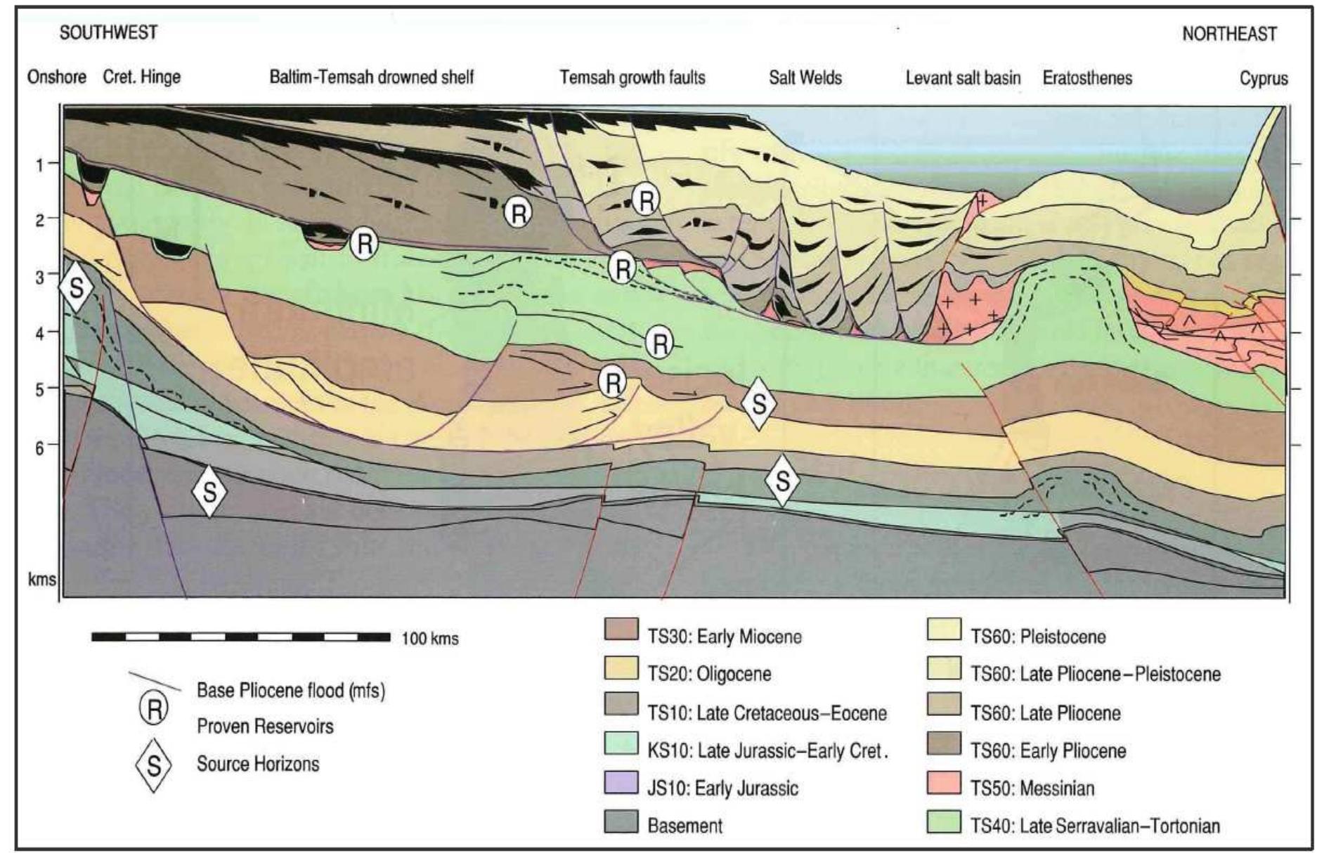 Schematic cross section of the eastern Nile Delta illustrating major ...