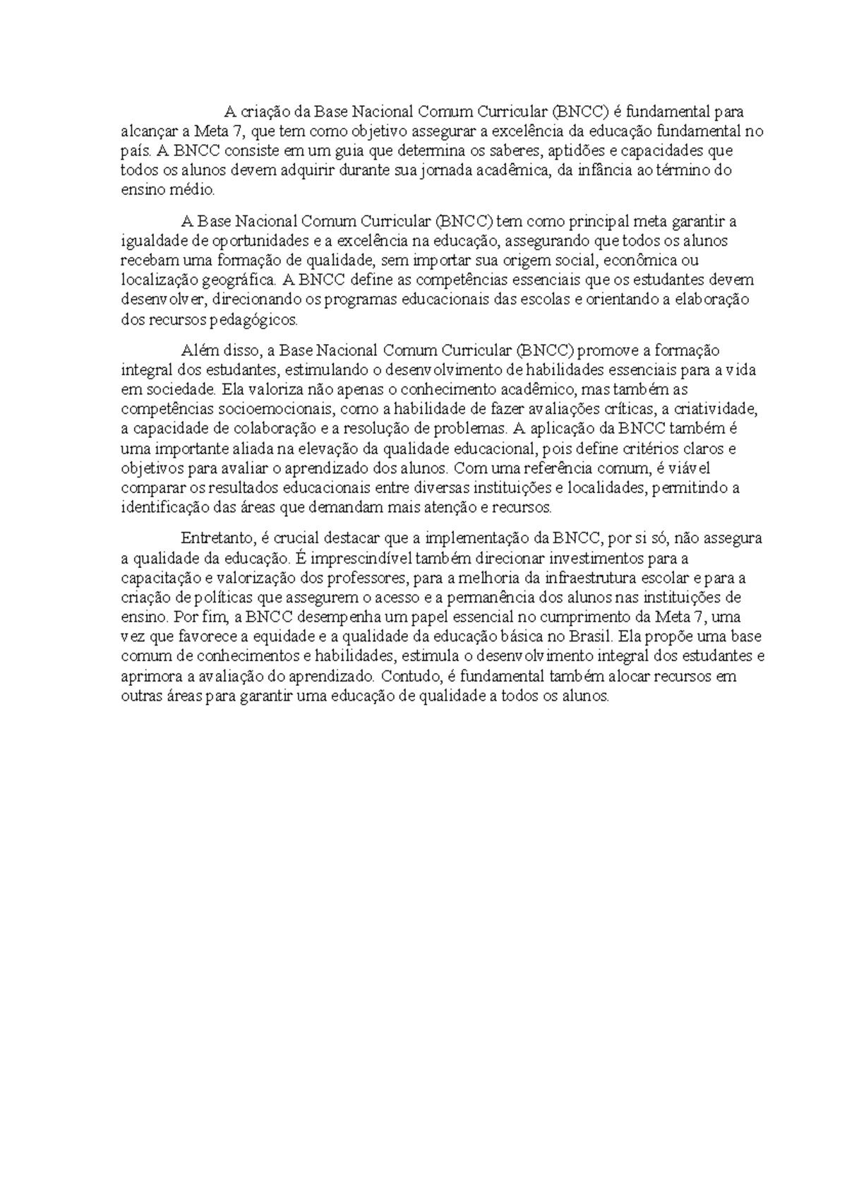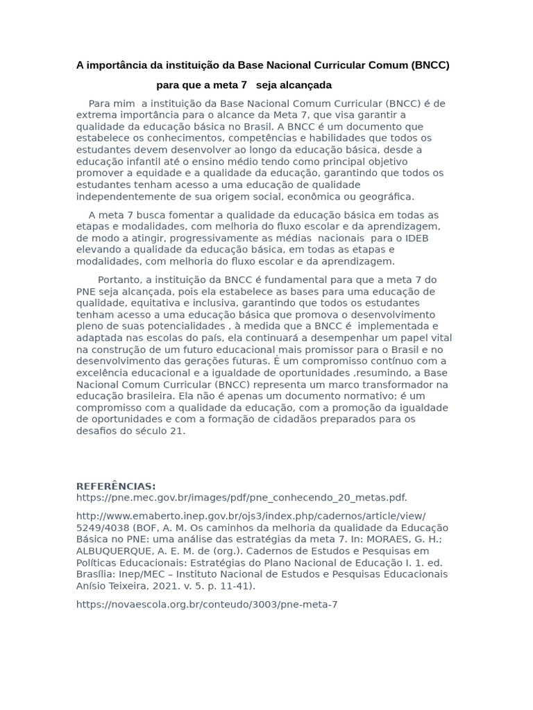 Importância da BNCC para a Meta 7 | PDF