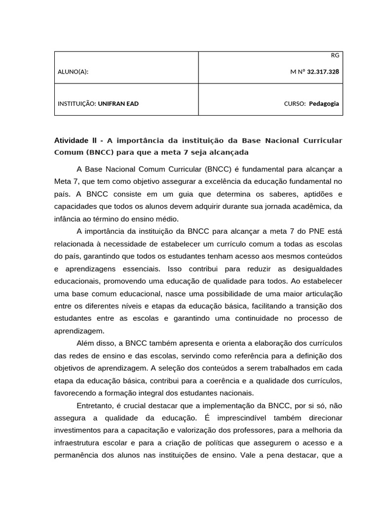 Atividade II - A Importância Da Instituição Da Base Nacional Curricular ...