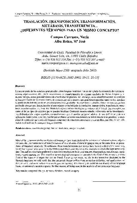 (PDF) Traslación, transposición, transformación, metábasis ...