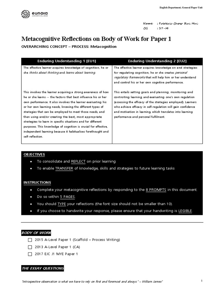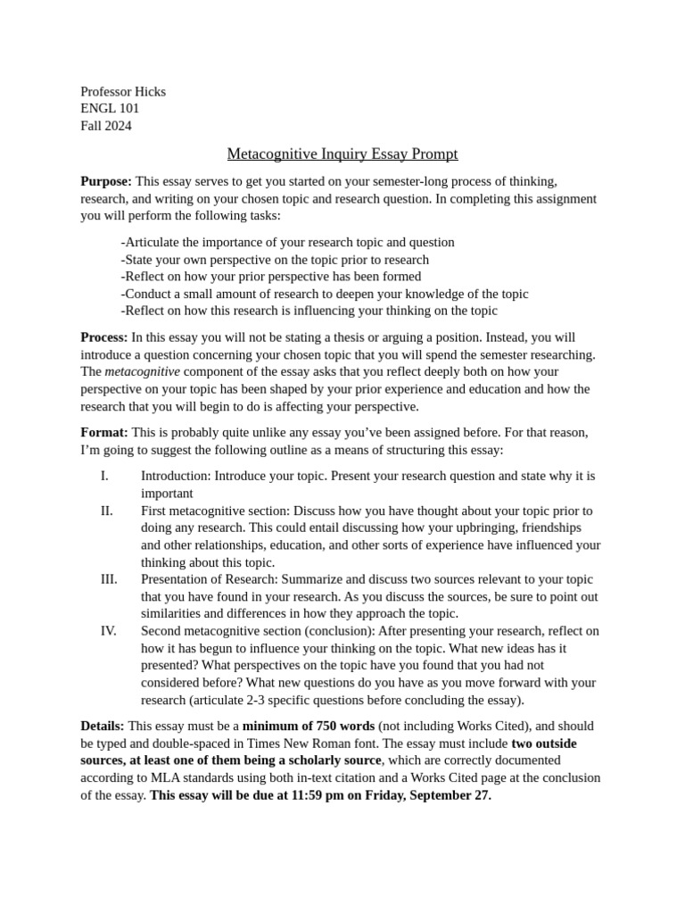 Metacognitive Inquiry Essay Guide | PDF | Essays | Metacognition