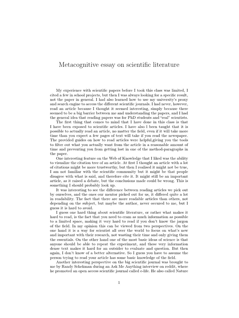 Metacognitive Essay On Scientific Literature | PDF