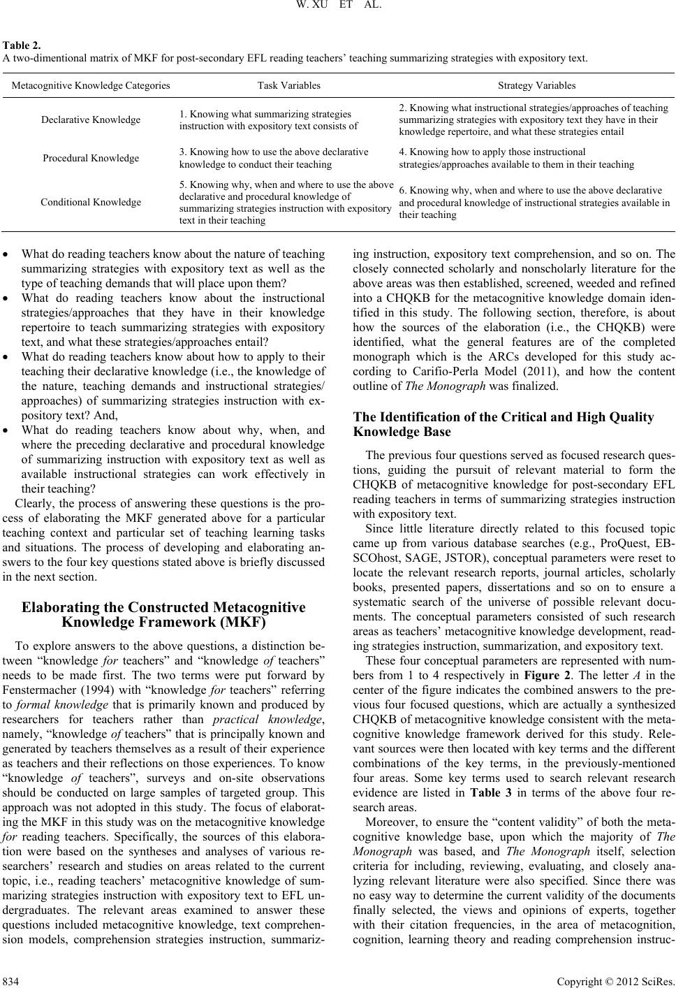 Constructing a Metacognitive Knowledge Framework for Post-Secondary EFL ...