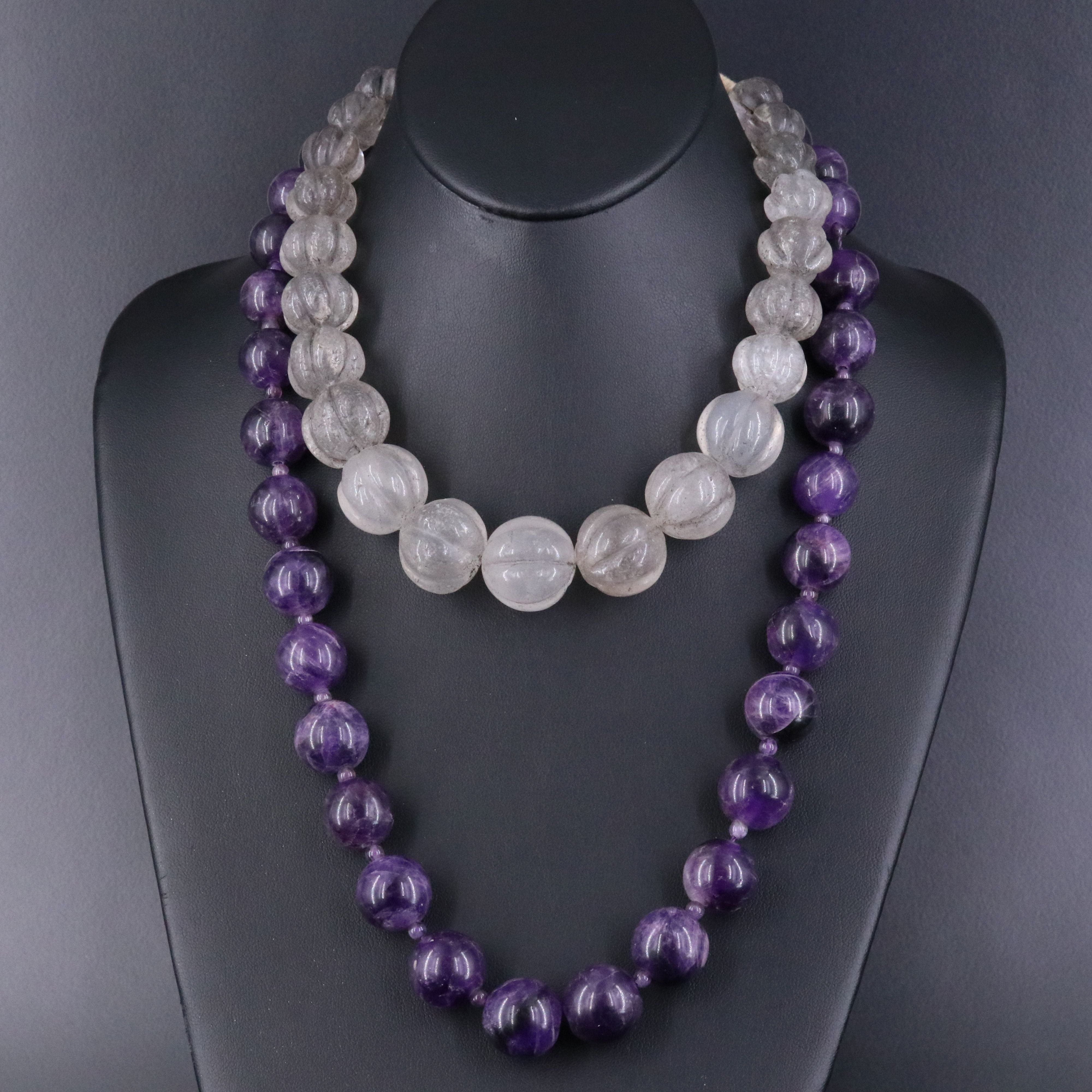 Graduated Amethyst and Carved Quartz Bead Necklaces | EBTH