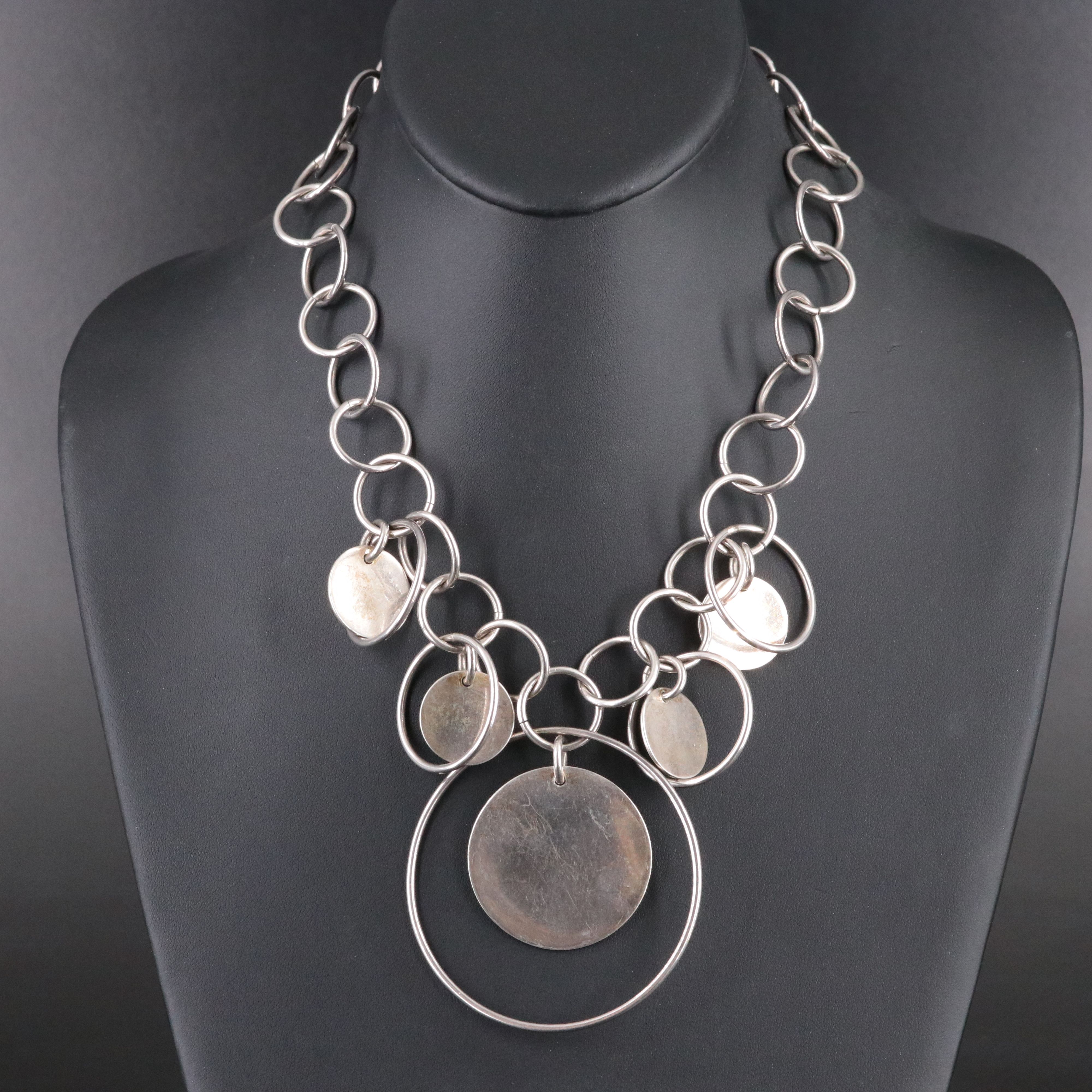 Sterling Graduated Circle Link Fringe Necklace | EBTH