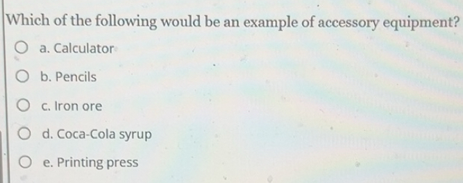 Solved: Which of the following would be an example of accessory ...