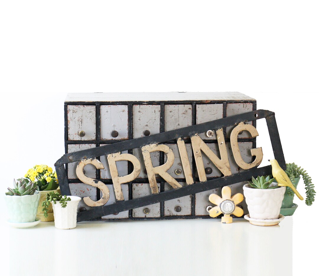 Vintage SPRING Metal Sign, Iron Metal Sign, Black and White Sign ...