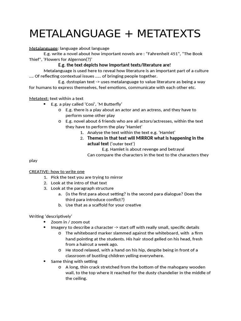 Metalanguage Overview | English Language - Year 12 VCE | Thinkswap