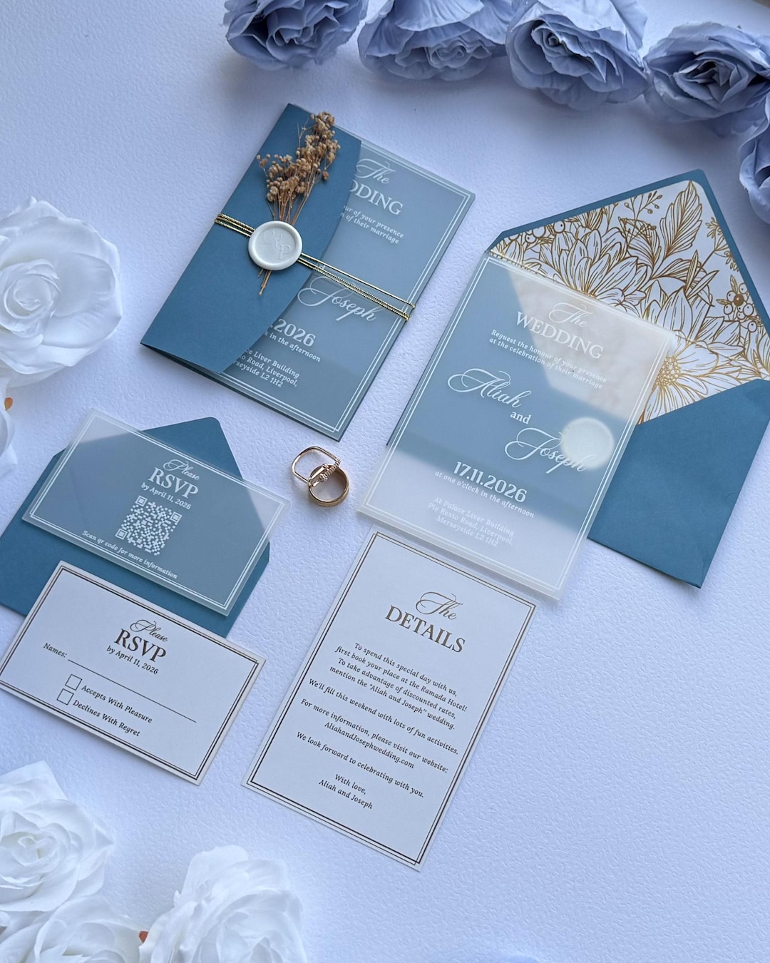 Frosted Acrylic Wedding Invitation: Soft Blue Invitation Suite With ...