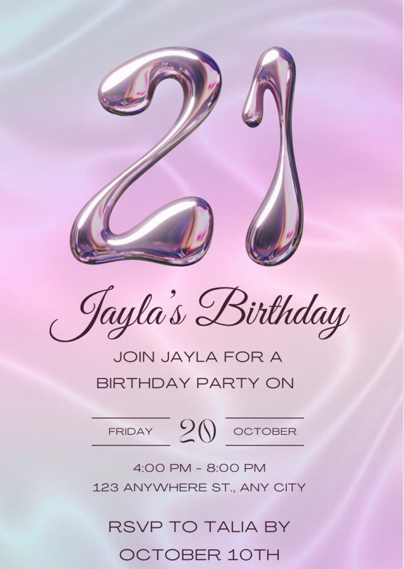 Metallic Birthday Invitation, Birthday Invite, Canva Template, Birthday ...
