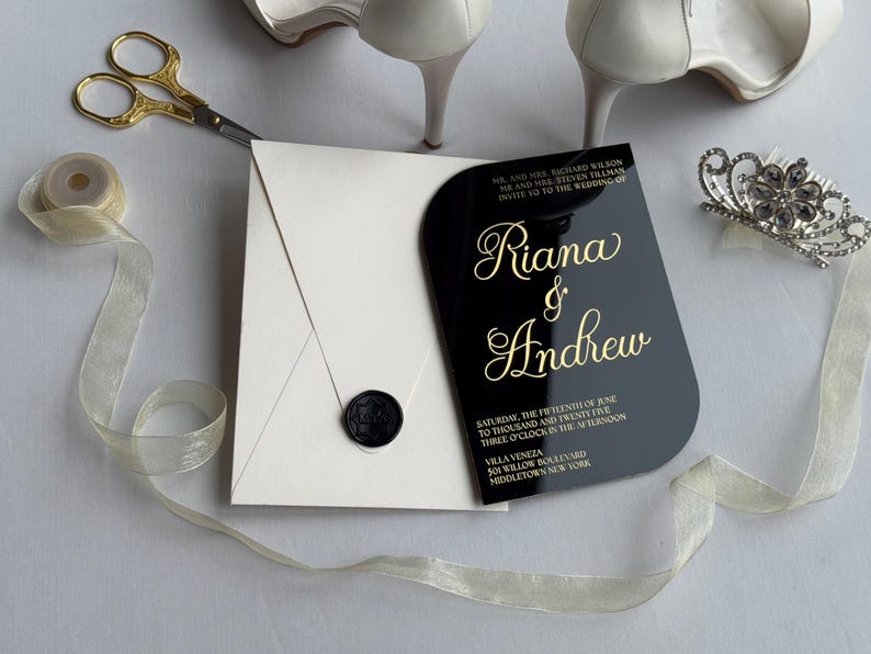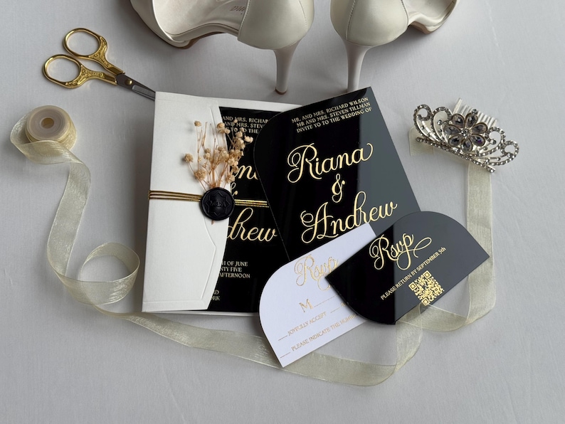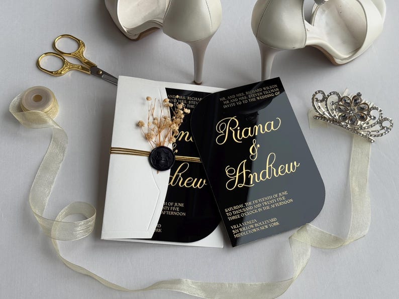 Luxury Black Acrylic Wedding Invitation: Gold Foil, Wax Seal - Etsy