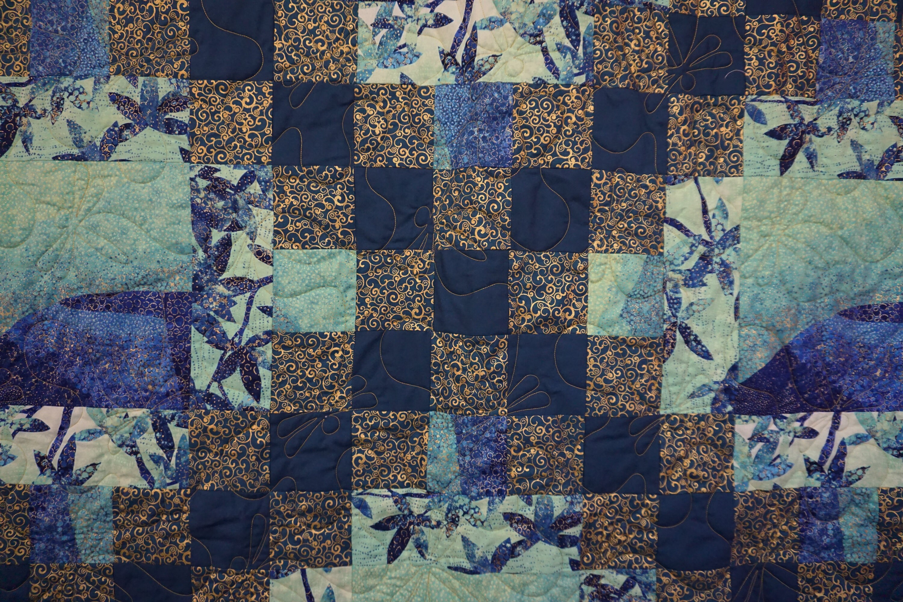 Dragonflies and Metallic Quilt-handmade-blues, Black, Touch of Metallic ...