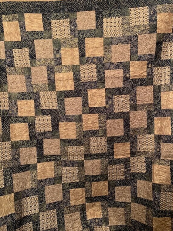 Navy Teal and Metallic Gold Queen Size Quilt Patchwork - Etsy