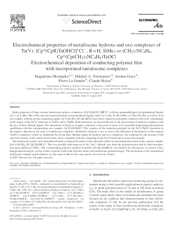 (PDF) Electrochemical properties of metallocene hydroxo and oxo ...