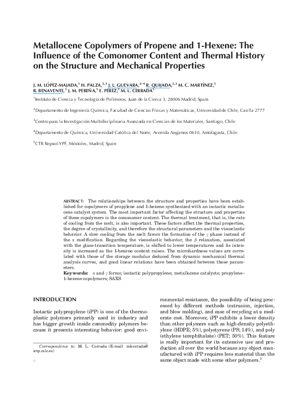 (PDF) Metallocene copolymers of propene and 1-hexene: The influence of ...