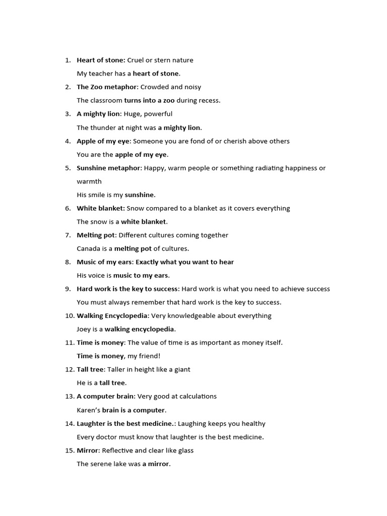 Calaméo - List of Metaphors with Examples for School Students
