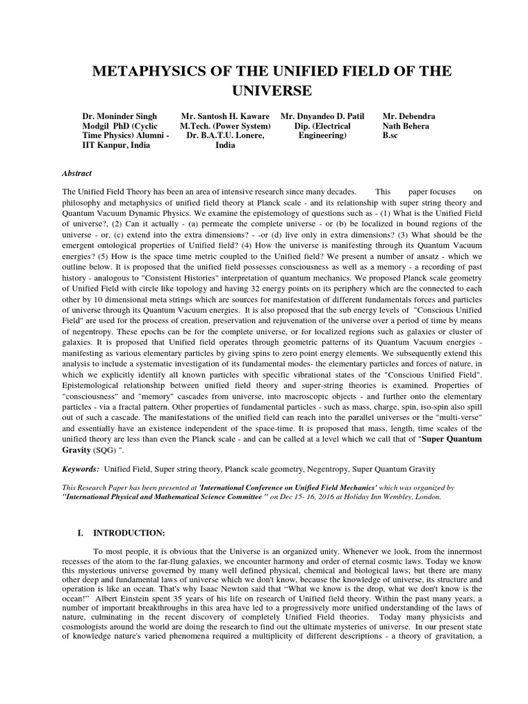 Metaphysics of The Unified Field of The | PDF | Theory Of Everything ...