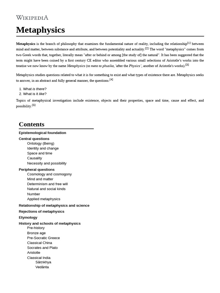 Metaphysics - Wikipedia | PDF | Philosophy Of Mind | Metaphysics