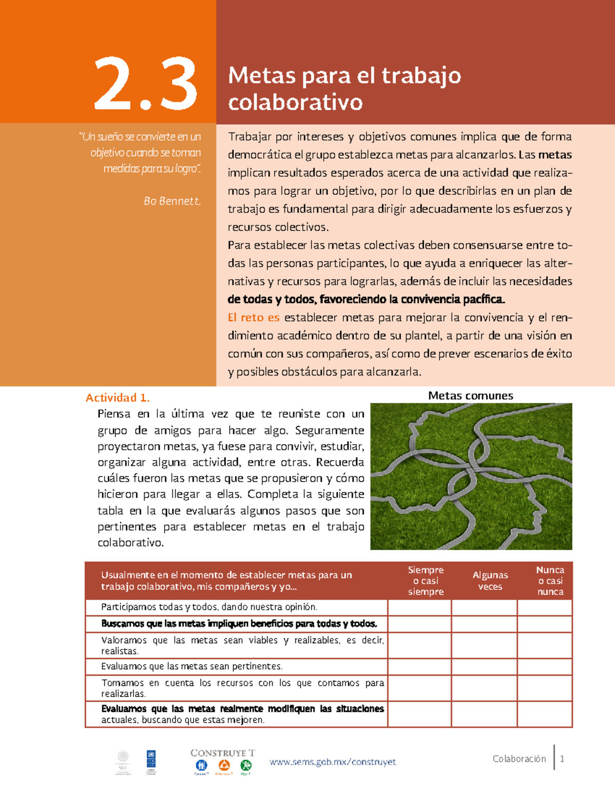 2.3 Metas para el trabajo colaborativo - Colaboración 1 Usualmente en ...