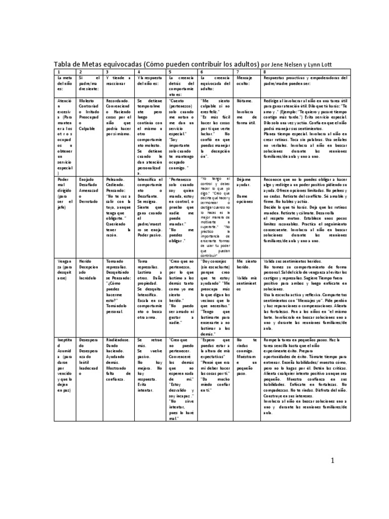 Tabla de Metas Equivocadas | PDF
