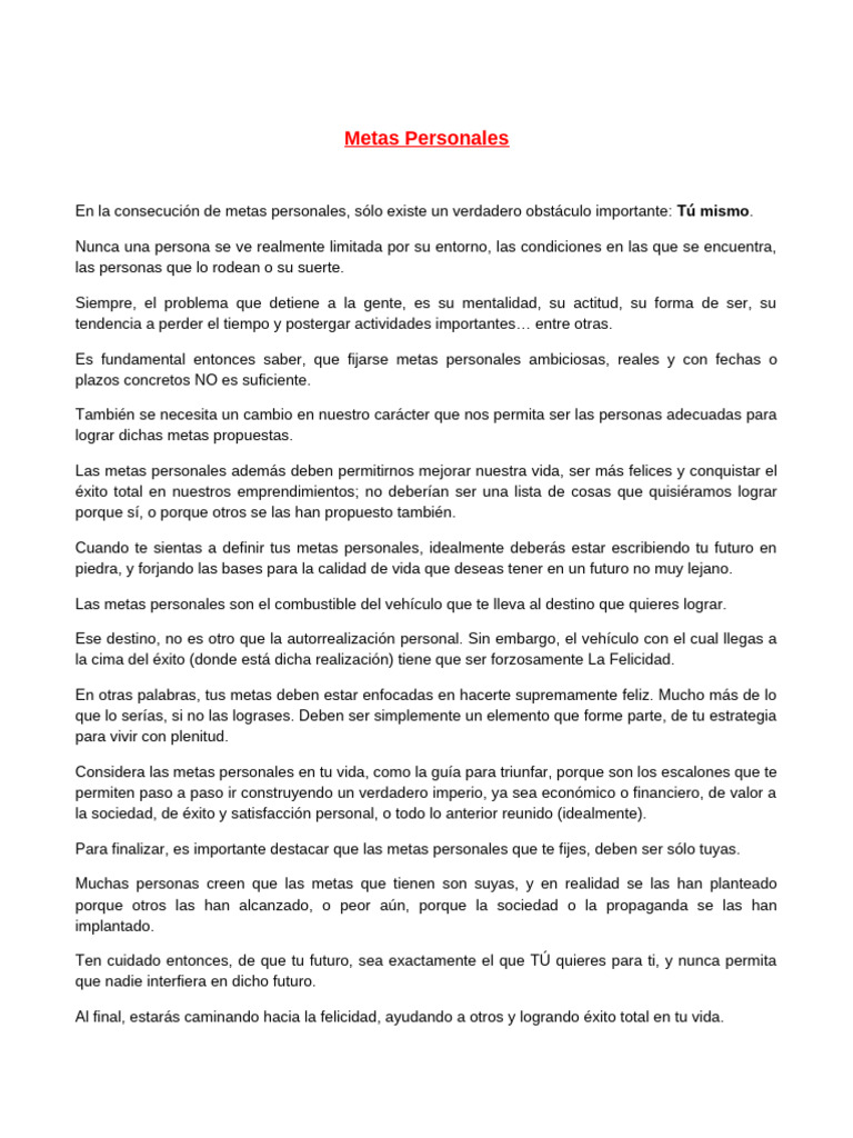 Mis Metas Personales - FT2 | PDF | Finanzas y dinero